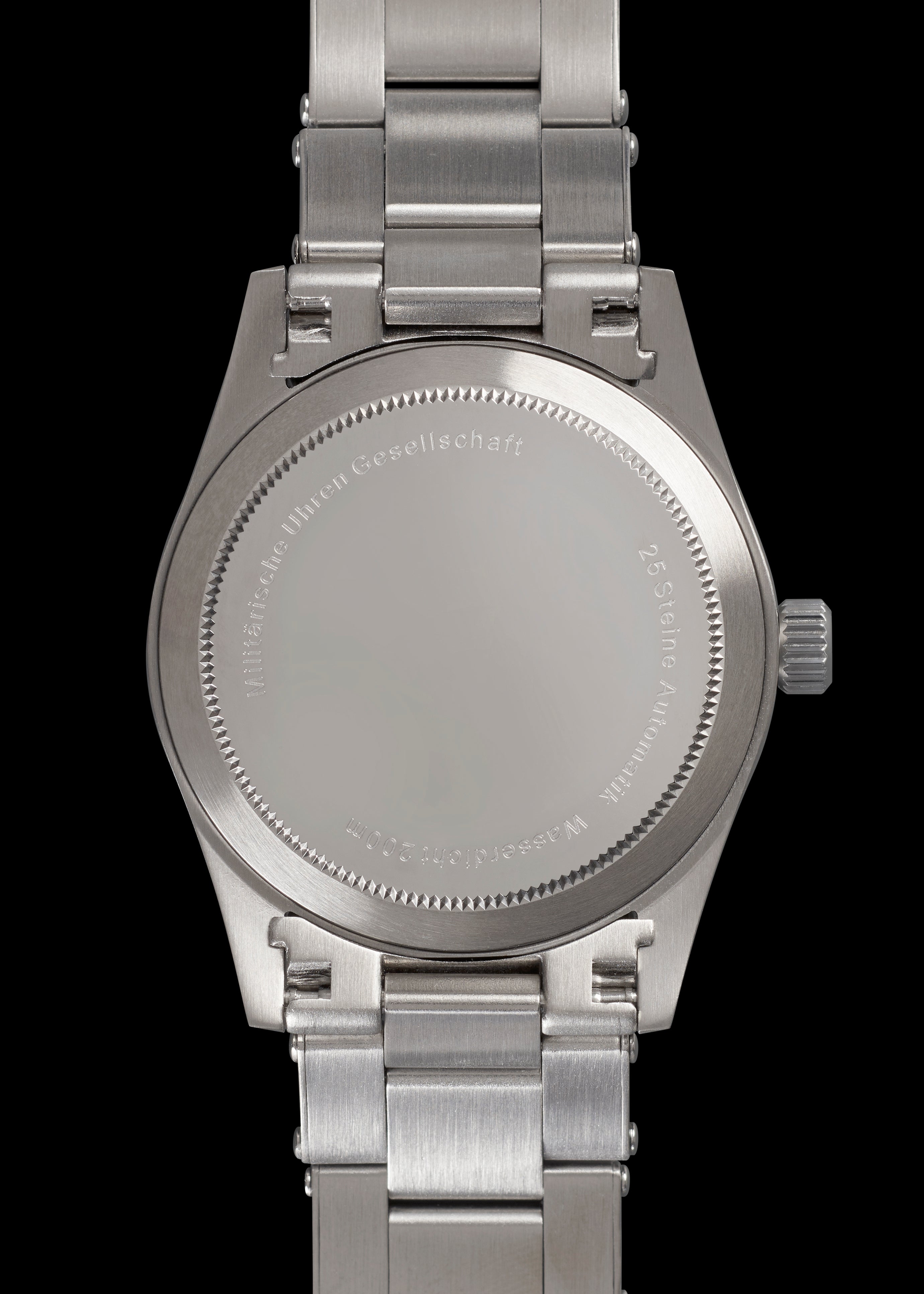 The watch uses Luminova instead of the Tritium that was used in the 1960s. The main advantage of Luminova is that it does not deteriorate with age and is non-radioactive. In this variant, the paint color mimics the appearance of aged Tritium paint.